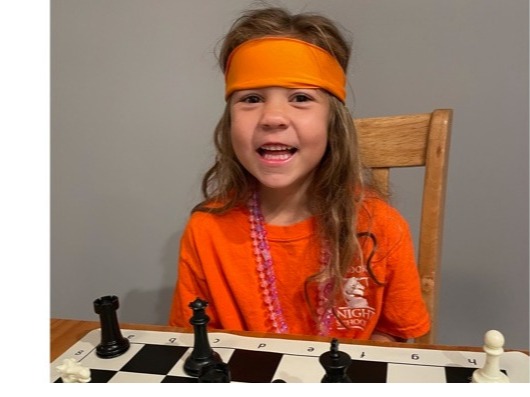 1) Our Chess Nuts kindergartners wear an orange shirt; The Knight School Elementary kids wear purple. That way there is no mistaking who needs the extra attention!